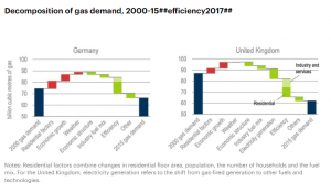 Energy Security – Energy Efficiency & Conservation have benefits for energy security also – By reducing overall energy demand, efficiency can reduce reliance on imports of oil, gas and coal. In the graphs above sourced from the IEA we can see the impact of efficiency on the gas demand in the UK & Germany compared with electricity generation changes.