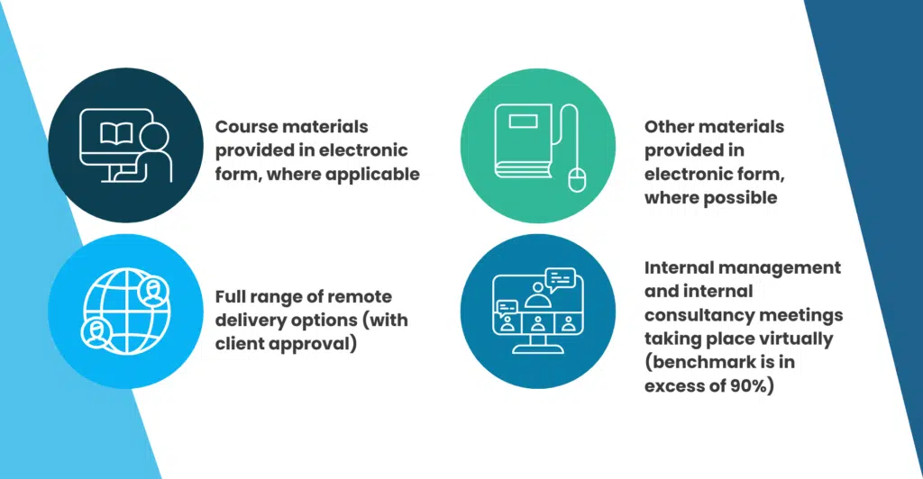 Leading Edge Associates is also particularly focused on the delivery of services in a sustainable manner. Examples of the sustainable focused measures adopted are included below. Leading Edge Associates continues to adopt an increasing number of such measures, where at all possible, to make a genuine contribution to climate action and sustainability.